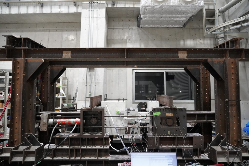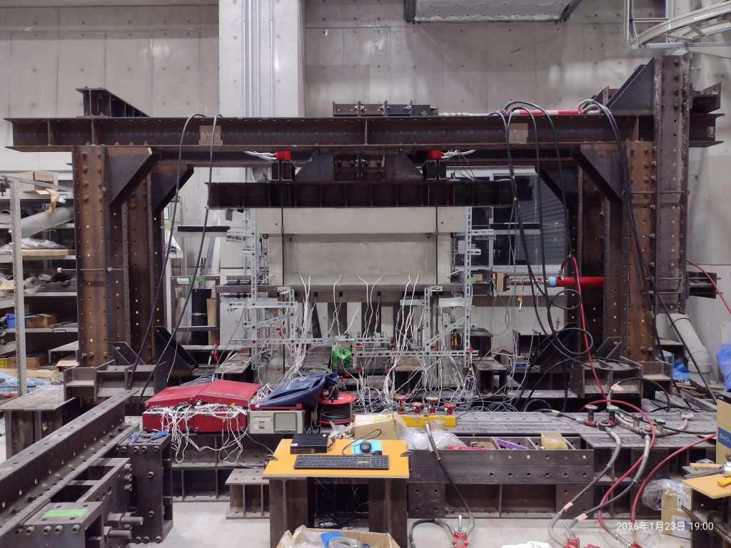 1月に平面ピロティ架構の加力実験が西6号館の実験室で行われました。林さんの修士論文研究の一環です。初めてのセットアップで苦労も多かったと思います。お疲れさまでした。