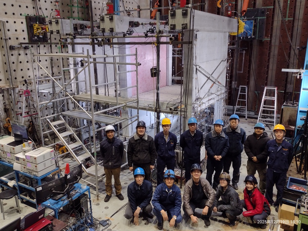 京都大学での立体ピロティ架構試験体の加力実験が年末に無事終わりました。これは京都大学谷研究室と豊橋技術科学大学松井研究室の3研究室での共同研究で、実験計画から事前解析なども含めると2年弱のプロジェクトでした。参加した学生の方々もお疲れさまでした。